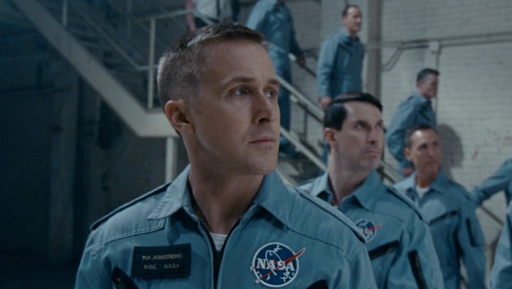 My biggest problem was Neil's treatment of himself. I know almost nothing about her, so I'll try not to speculate too much, but it seems that Chazelle's (and perhaps especially screenwriter Josh Singer's) intention was to humanize her story. The film opens with the death of his young daughter, and Neil spends the next eight years in obscurity. His goal of landing on the moon seems to be both dangerously compulsive and oddly joyful, and his ultimate success is the result of luck rather than the hard work, training, and discipline that real-life undoubtedly requires.