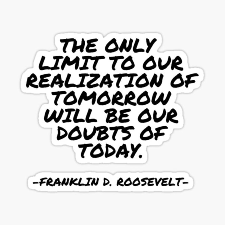 "The only limit to our realization of tomorrow will be our doubts of today." Franklin Delano Roosevelt