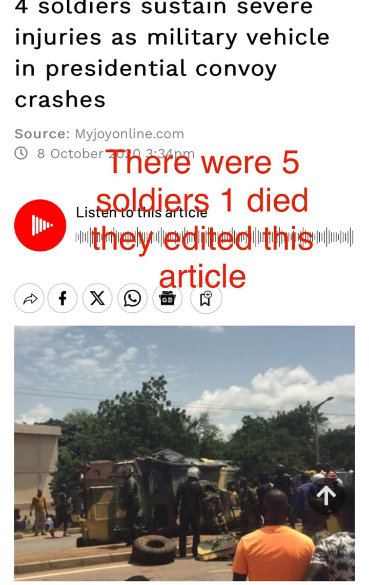 Here is an example, when I arrived in Ghana in October of 2020, a month early a Ghana Army soldier died in a horrible accent. He was 1 of 5 men in a military vehicle. Back then I searched for the article after my ex who is an active member of the Ghana Army told me about this accident. It was one of the only times I heard him drunk before. He doesn't drink alcohol and that conversation broke my heart.
