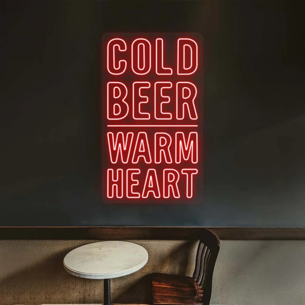 4. Some neon manufacturers can also help you personalize your neon sign according to your requirements. You can get your personalized light-up bar sign, logo, or name made with neon signs, which can help you with brand establishment and recognition. For example, a quote like Cold Beer, Warm Heart can be perfect in your bar