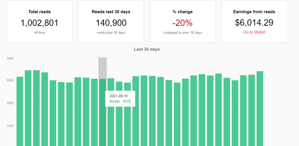 You might have seen that Ad from Vocal, "Join Vocal and make $6,000 a month," while it will take me over a year to get to the $6,000 mark or one million reads. First, we all should be grateful for whatever we have. Writing is compelling, and especially when you are writing over 5,000 words a day, it could help you build an empire.
