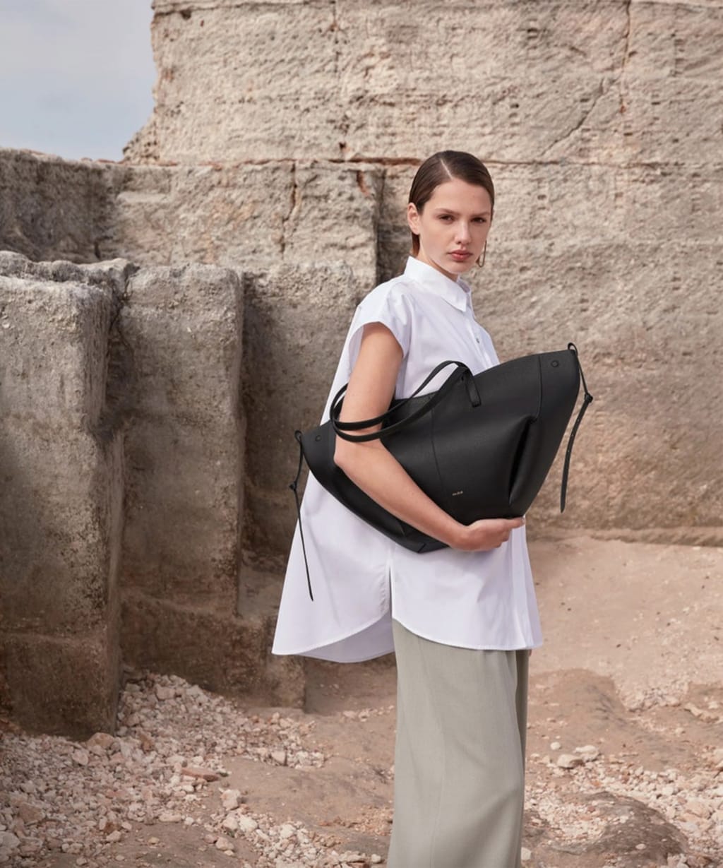 “If you know me, you know I dream of nothing more than to be dressed in head-to-toe The Row — and essentially morph into the fourth Olsen sister. So it should be no surprise that I was seriously considering investing in this perfectly sized classic black bag as a birthday gift to myself, but ultimately decided to give myself another month or two to save some dollars before I take the plunge into supple leather heaven. Note: if you’re interested in something similar that’s also big enough to fit a laptop.