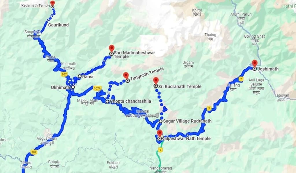 Panch Kedar Map: A Detailed Route Map of Panch Kedar Temples Yatra