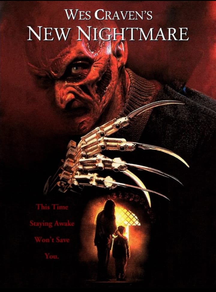 June of 1999, on a summer night I’m upstairs in my mom’s room watching tv while she’s at work and my big sister is downstairs watching tv in the living room. While I’m watching Stand By Me (1986) on my mom’s tv my older sister is telling me to come downstairs with her and watch this good scary movie she was looking at on tv. After I finished watching Stand By Me I went downstairs and found her watching this movie about this monster-looking dude who had claw-like, razored fingers and he was chasing after this little boy and his mother in what looked like a boiler room with a waterfall. The monster’s name was Freddy Krueger and the name of the movie was called New Nightmare (1994).
