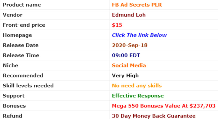 Edmund Loh put a ton of his thought into this FB Ad Secrets PLR.