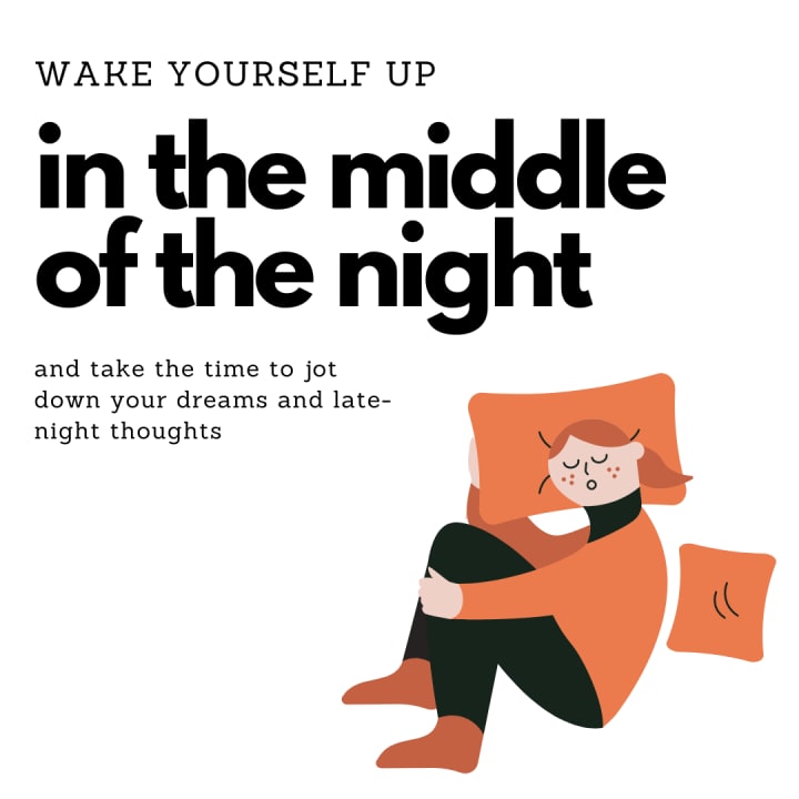 For this challenge, set yourself an alarm for in the middle of the night. When it rings, jot down any first thoughts that come to mind, or write about what you were dreaming. You can also do this when you get up for a midnight snack or go for a small trip to the bathroom. Bring a notepad with you! No matter when or why you get up, take the time to jot down the most important elements of your dream or your current thoughts. This way, if ever you lack inspiration in the future, you’ll have a notepad to refer to for ideas.