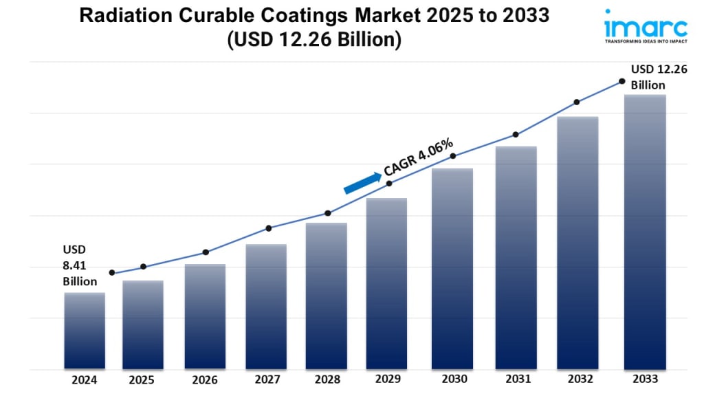 The global radiation curable coatings market size was valued at USD 8.41 Billion in 2024. Looking forward, IMARC Group estimates the market to reach USD 12.26 Billion by 2033, exhibiting a CAGR of 4.06% during 2025-2033.