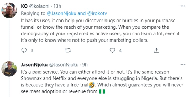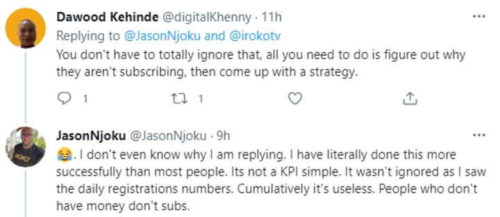 People were surprised to find out that out of almost seven million IrokoTV users, most of them were junk. One user responded to Jason saying: