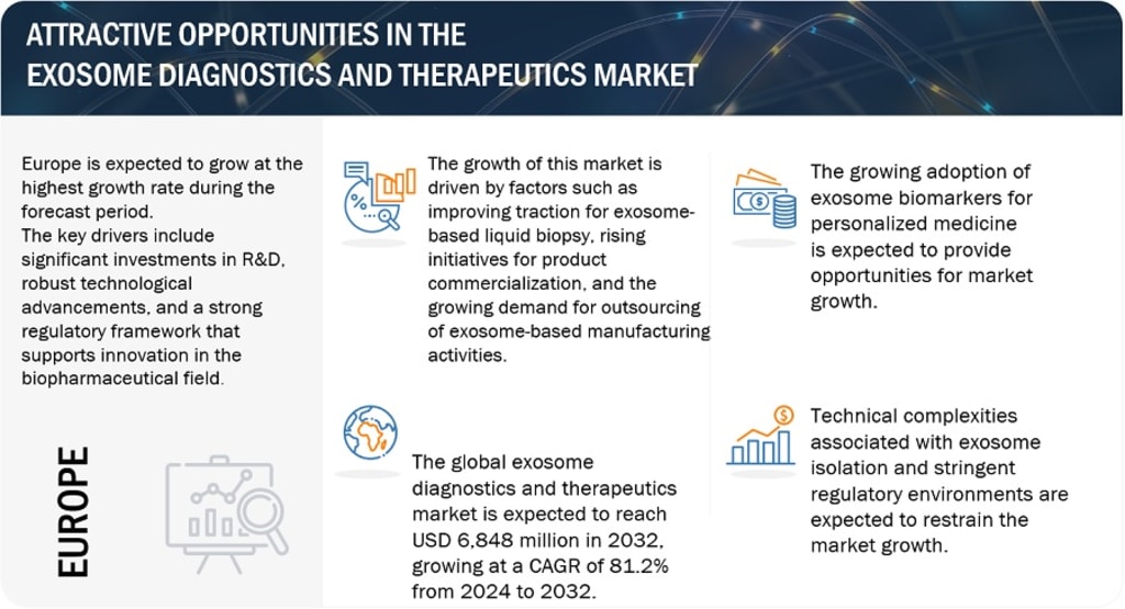 The growth of this market is driven by factors such as the increasing collaborations & commercialization initiatives, emerging potential of exosome-based liquid biopsy, and growing outsourcing of exosome manufacturing activities. However, inadequate protocols for exosome development & production may pose a challenge to the market growth.