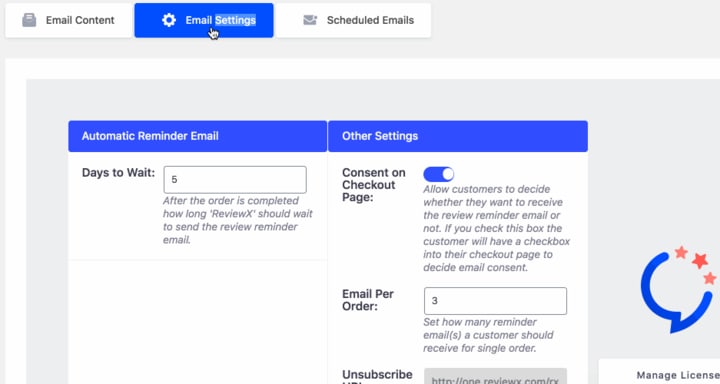 Usually, a customer gives a rating or review after or during the use of the product. Now, this busy life he may forget to share the good experience of that product. Here, ReviewX offers an excellent solution, an automated review reminder email will send to the potential customer to give a review about the product he/she has purchased from that store. Don't worry, there is an unsubscribe option in that email, so the customer will not be annoyed.
