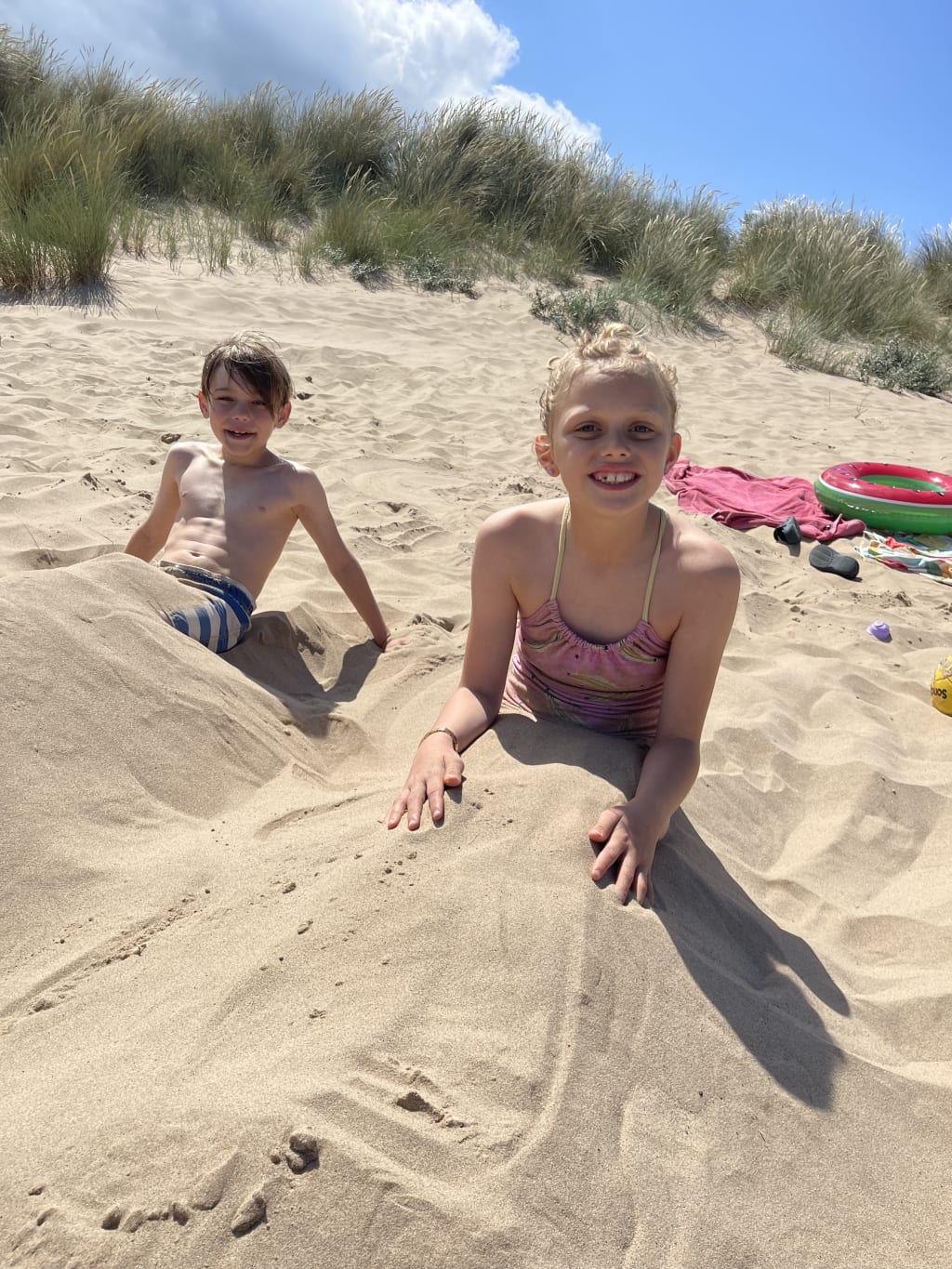 We played. We soared. They carried inflatable rubber rings out into the ocean with grubby fists and chased merrily as they waves carried them away. They named caterpillars. (Don’t ask. There’s now a “Gary the Wriggler” who lives in my wallet.) We ran, we buried limbs, we fought invisible sand monsters, and for a brief, glorious time…