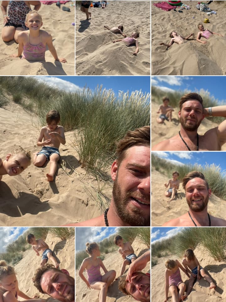 The children ran barefoot across the sand like the wild animals they are, screeching and flailing as though summoned by Neptune himself. The sea called, and I, father of wolves and bringer of towels, answered.