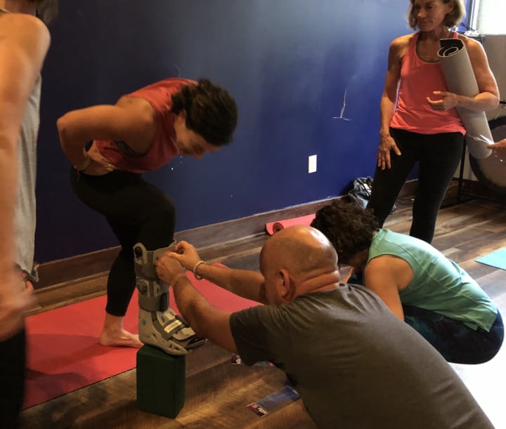 When one of his yoga teachers broke her foot he brought fun, colorful stickers to the early morning class so that all of the students could decorate her boot—a joyful activity that his teacher also engaged in with sheer delight.
