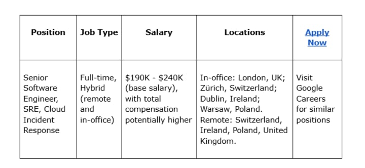 Are you ready to take your software engineering career to the next level? The role of a Senior Software Engineer, SRE, Cloud Incident Response at Google is not just a job—it’s an opportunity to work on cutting-edge technology, collaborate with world-class engineers, and make a real impact on billions of users. In this article, we’ll walk you through everything you need to know about this exciting role, from job details to how to prepare and apply. Whether you’re a seasoned professional or an aspiring engineer, this guide is your roadmap to success.