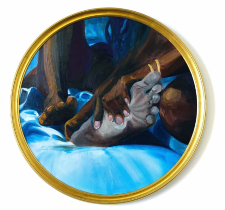 The human body truly is an art in itself, and artists all across time and place have inculcated the subject of nudity in their art. It is a form of intimacy, trust, vulnerability, and freedom. For Charkarbati, her exhibition Skin to Skin signifies an idea that goes beyond the concept of nudity. It is an homage to the Bhakti tradition and the loving relationship between the student and the divine; especially the act of the student touching the feet of their teacher which Charkarbati sees as very passionate and altruistic.