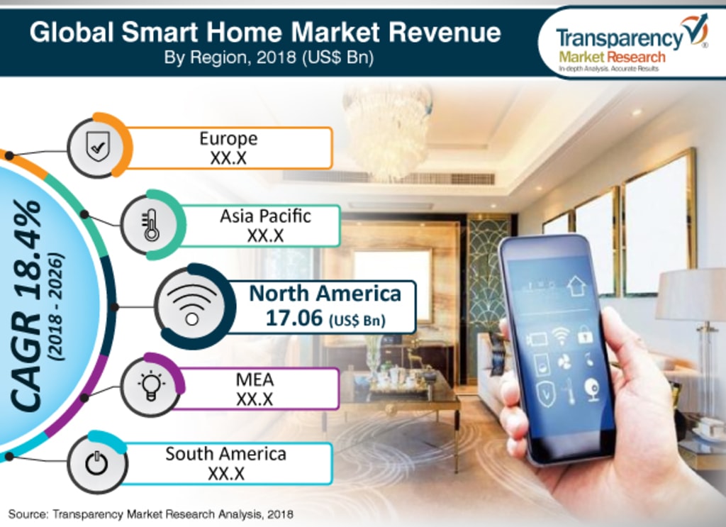 Among regions, North America is expected to spearhead growth for smart homes, thanks to growing investment in technological advancement in the region, coupled with introduction of supporting mechanisms like 5G network. Asia Pacific region will likely register highest CAGR during 2018-2026, and take the smart home market to new heights, as large population of young buyers are likely to find major appeal in technological advancements