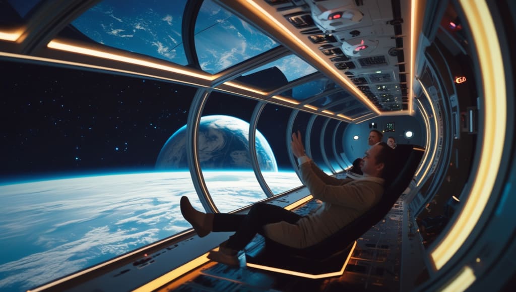 Imagine sipping a cocktail while gliding along the Earth's curve. Or a picture witnessing a sunrise from space, with the horizon showing in oranges and blues against a black background.