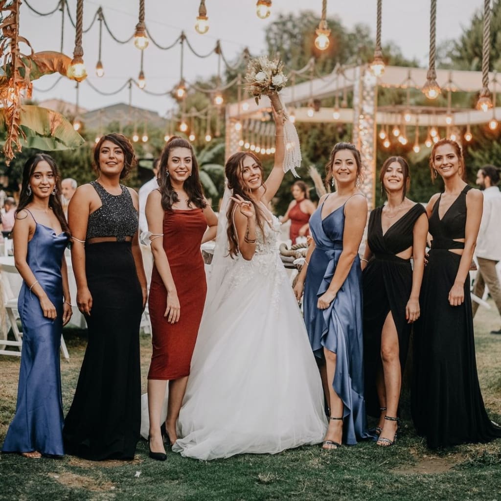 If it’s outdoor, go for a mini lace dresses or a maxi dress with sandals. For garden weddings, choose a midi dress with wedges. And for formal ceremonies, stick to a flowy midi dress or a tailored suit with heels.