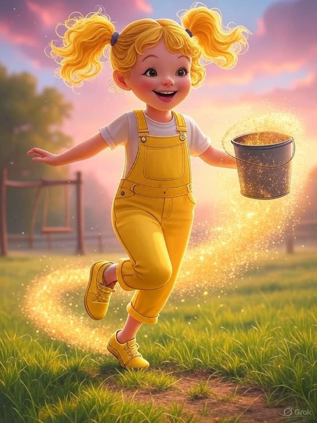 Out of her overall pockets floated out golden sparkles