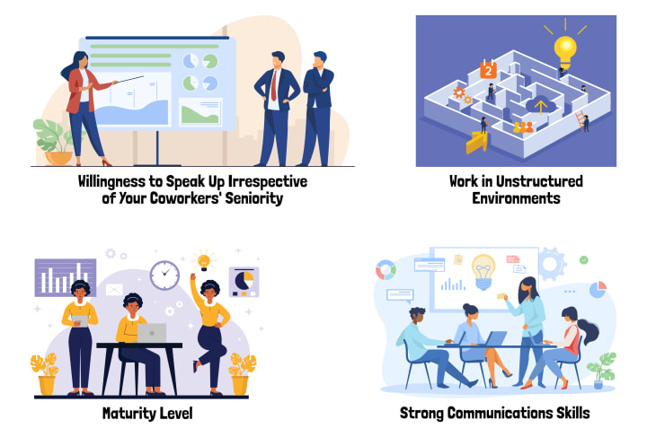 - Willingness to speak up irrespective of your coworkers' seniority.