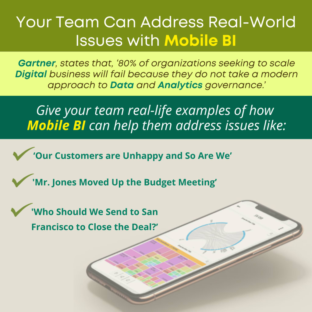 If your business can provide real-world business use cases and issues for team member consideration, it is more likely your team will see the benefits of mobile BI and analytics and how these tools can help them do their job, gain visibility, maximize their potential and time and get the job done more easily.