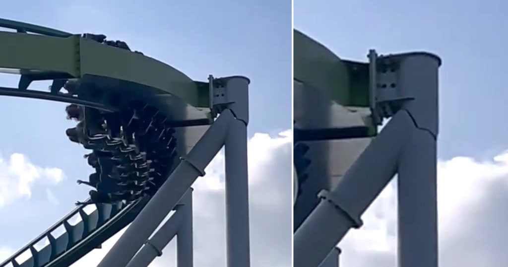 Terrifying moment huge crack appears on rollercoaster as riders race past
