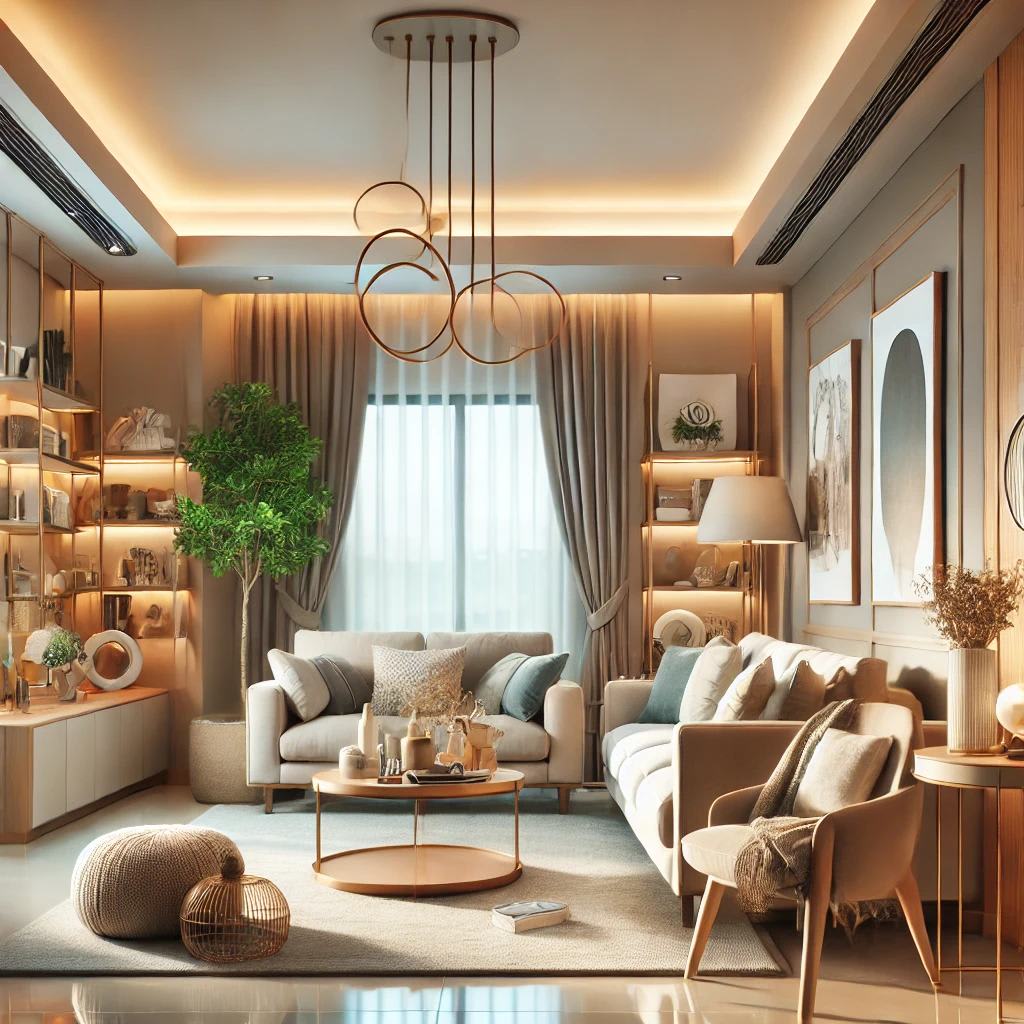 Tip: Use a base of neutral tones like white, beige, or gray, and add pops of color through accents like cushions, artwork, or statement furniture.