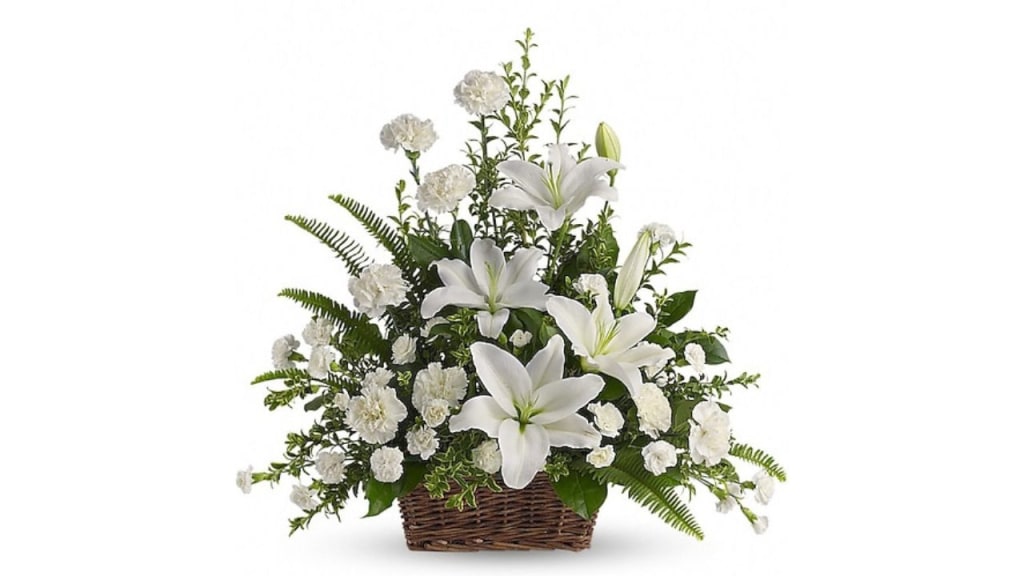 When gifted in a basket, the lilies not only stand as a symbol of peace but also as a token of care and consideration. Whether given as a gift of sympathy or as a simple gesture to show appreciation, they reflect the thoughtfulness of the sender. The soft curve of their petals and the elegance of their arrangement convey a sense of dignity and respect, and even in the quietest of moments, they have the power to convey profound emotions.