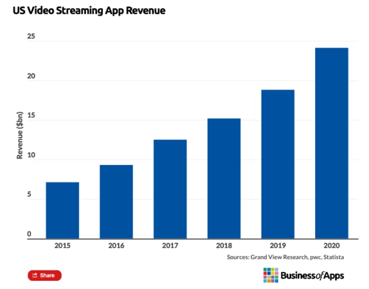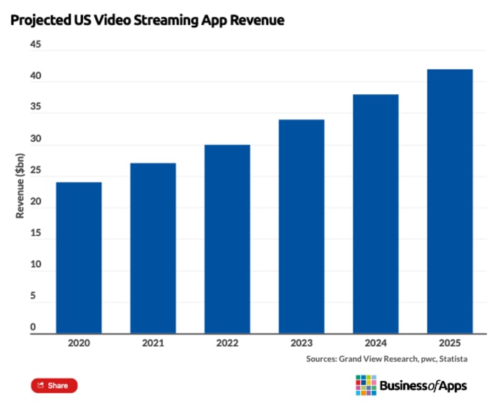 Figure 2: Projected US Video Streaming App Revenue - 2020-2025