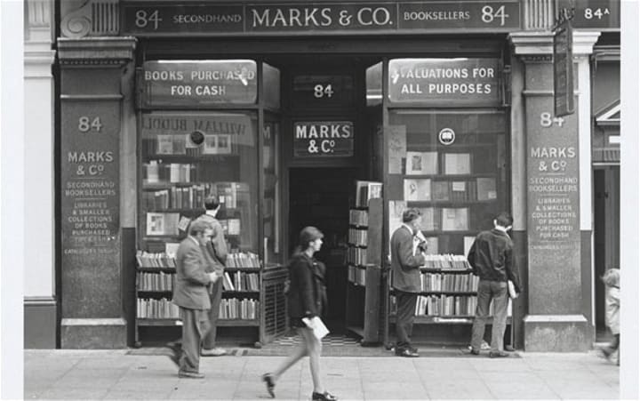 After Doel left school, his first and only job was with Marks & Co. at 84 Charing Cross Road. Amazing. He learned a lot about the book business from his employers, Ben Marks and Mark Cohen - hence, Marks & Co., a company that sold rare books.