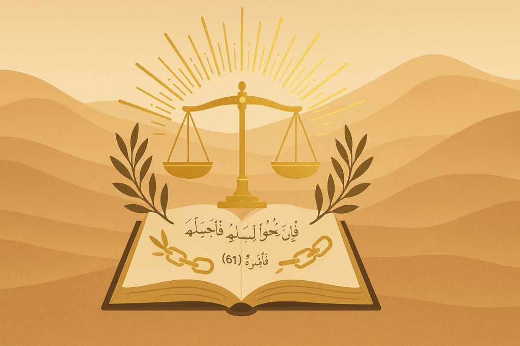 establishes peacemaking not as concession but wājib (obligation). This principle dismantles contemporary justifications for collective punishment. When Israel’s siege of Gaza starves 2.3 million civilians, or Iran’s missile strikes risk regional conflagration, both violate the Prophet’s ﷺ injunction: