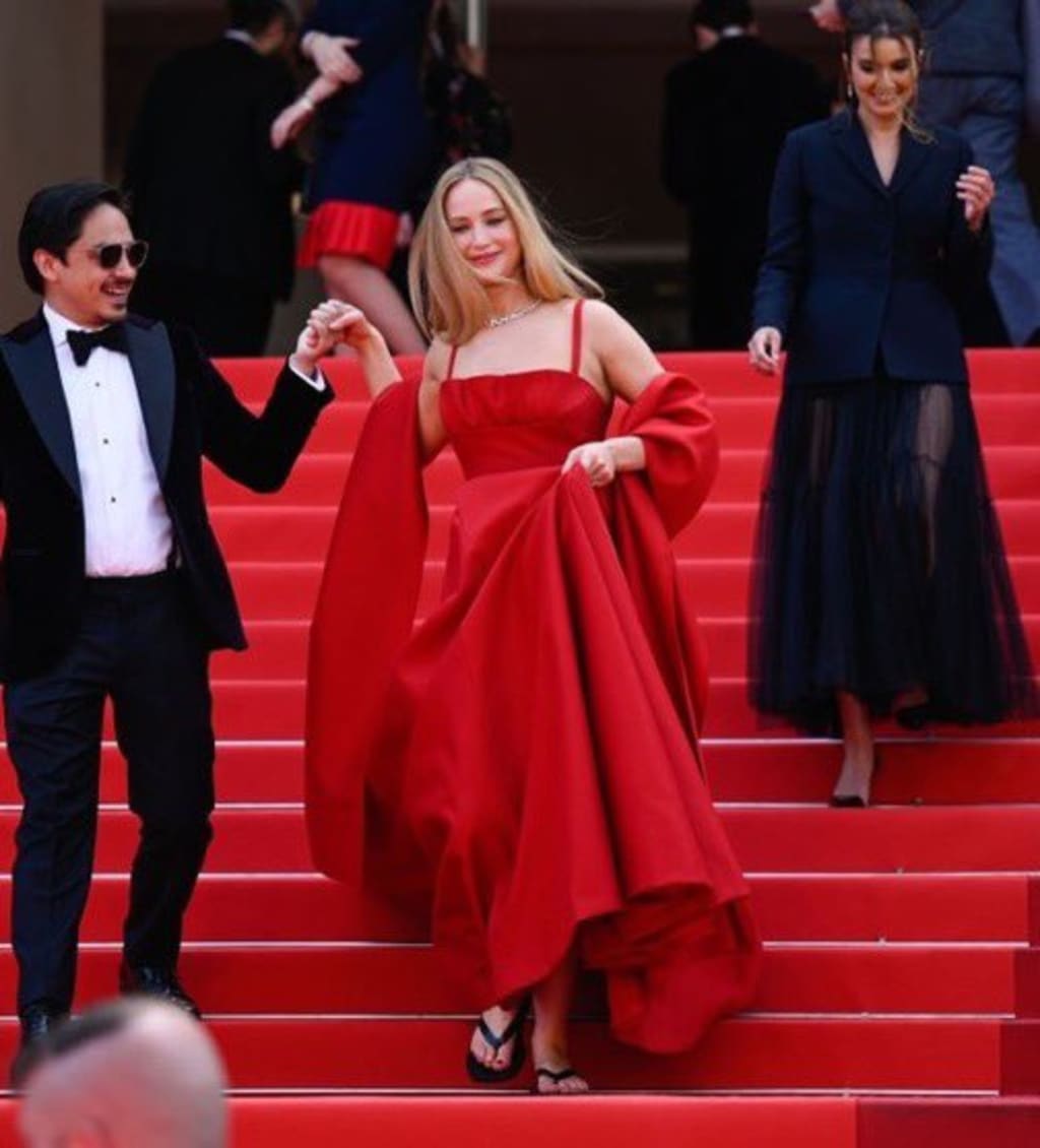 This year’s Cannes Film Festival is well underway and the star-studded event has already gifted us with countless glamorous, high-fashion celebrity looks. Jennifer Lawrence certainly lived up to that standard with her vibrant Dior gown worn on the red carpet on May 20 — but it was the flip-flops she paired with the look that really captured audiences’ attention.