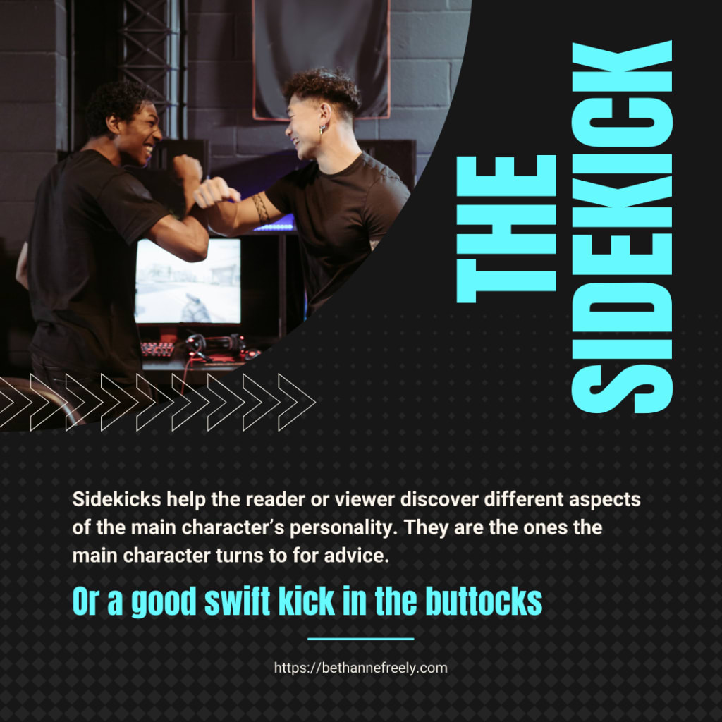 Sidekicks help the reader discover different aspects of the main character’s personality. They are the ones the main character turns to for advice. Or a good swift kick in the buttocks.