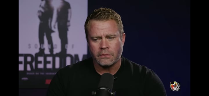 There's a pause as Tim Ballard's eyes shift to the side, his jaw clenches for a second and he swallows hard, his blue eyes downcast with sadness. The micro-movements of his face flash through the screen in seconds, but still long enough to give the viewer a small glimpse of the toll this kind of work has had on him over the years. His eyes shift back to the camera, and to his interviewer, Jordan Peterson, as he pushes on.