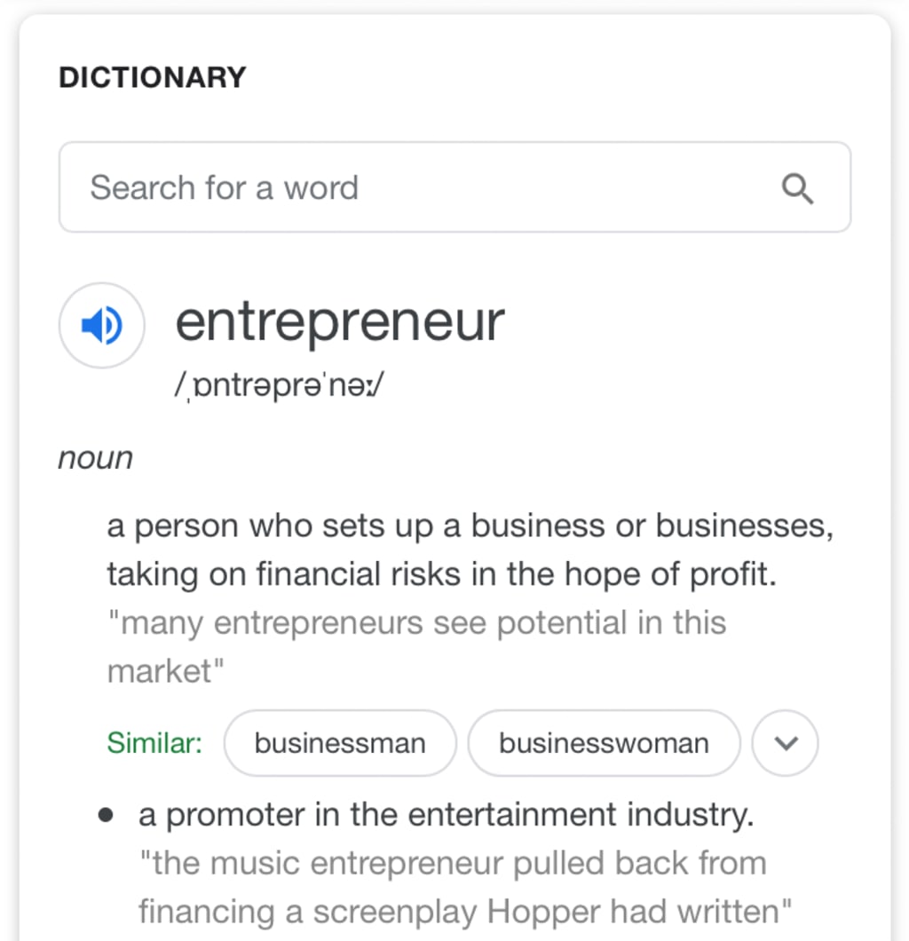 “a person who sets up a business or businesses, taking on financial risks in the hope of profit. “