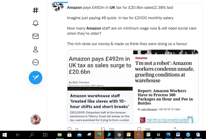 Jeff Bezos' establishment has been one of the biggest beneficiaries of the year long lockdown in the UK. In times past, the Royal mail was responsible for dispatching our mails and goods to our homes, but under the corrupt conservative regime, the job has since been outsourced to Amazon.