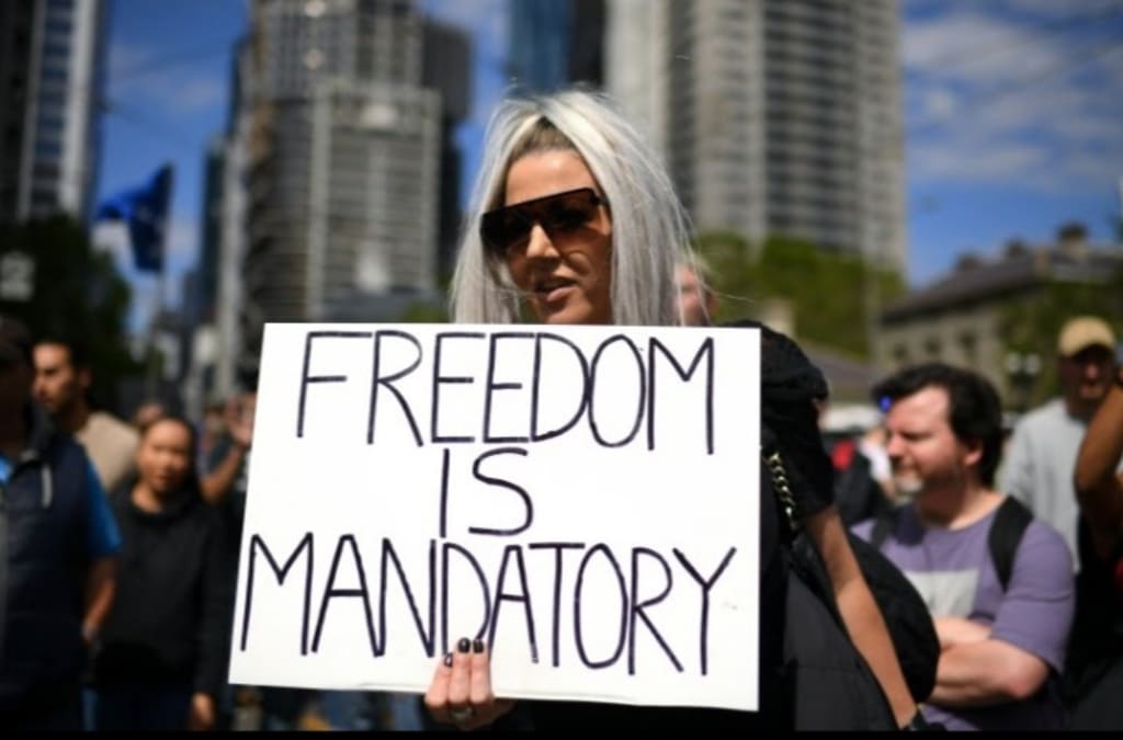 Several thousand anti-vaccination protesters marched through the streets of central Melbourne, Australia's second-largest city, chanting "freedom" and carrying placards calling to "fight tyranny" and proclaiming "unvaxxed lives matter," at a time when many families were enjoying the city's big department store's Christmas window displays.