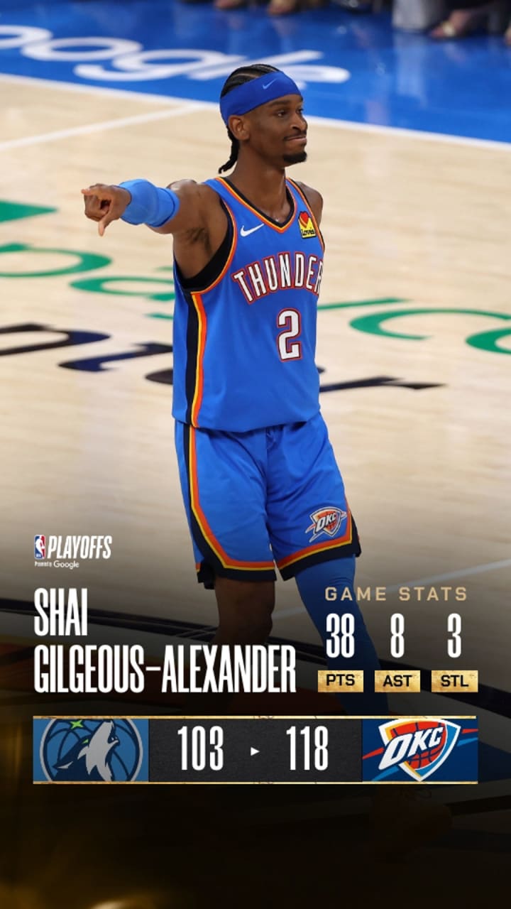 Oklahoma City, OK – May 23, 2025 – The young, dynamic Oklahoma City Thunder continued their dominant postseason run, defeating the Minnesota Timberwolves 118-103 in Game 2 of the Western Conference Finals, taking a commanding 2-0 series lead. The victory at Paycom Center was highlighted by an MVP-caliber performance from Shai Gilgeous-Alexander, who received his regular-season MVP trophy pre-game and then proceeded to play like every bit the league's most valuable player.
