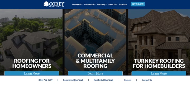 Corey Construction is a Houston-based roofing provider known for its quality craftsmanship and thorough inspections. Specializing in residential and commercial roofing, they have a strong focus on customer satisfaction, making them a reliable option for Houstonians seeking long-lasting roofing solutions.
