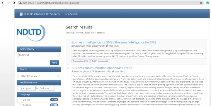Global ETDs (Global Electronic Thesis and Dissertation Search) are primary, rich, unique, and valuable sources of scholarly information, which is the outcome of focused, extensive and in-depth research work of several years, involving intellectual labour by scholars and their supervisors. This is a free service for researchers to find electronic theses and dissertations based on keyword, date, institution, language, and subject.