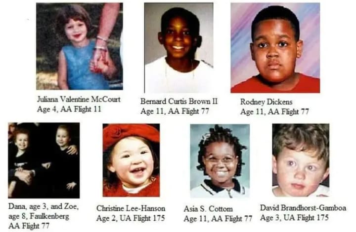 As if thousands of children losing their parents wasn’t bad enough, the reality that children were among the murdered on 9/11 made that Tuesday morning even more heartbreaking. A total of eight children were on three of the four planes that were hijacked that morning. Some of these children were traveling with their parents on vacation others were going on an educational field trip with their schools, all of them lost their lives. It’s bad enough that these children died and some of their parents were burdened with having to bury them, but it’s even worse that they had to die in such a heinous way while watching adults around them being murdered in their final minutes in this world.
