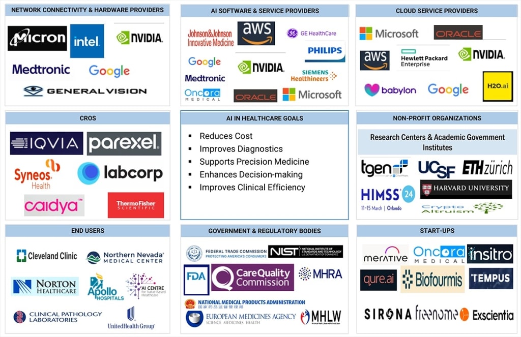 In parallel, startups such as Viz.ai, Tempus, and SOPHiA GENETICS are redefining the competitive landscape with AI-powered platforms for precision medicine, clinical workflow automation, and diagnostic imaging. Collaborations between hospitals, research institutions, and tech developers are accelerating pilot programs and clinical validations across oncology, cardiology, and neurology.