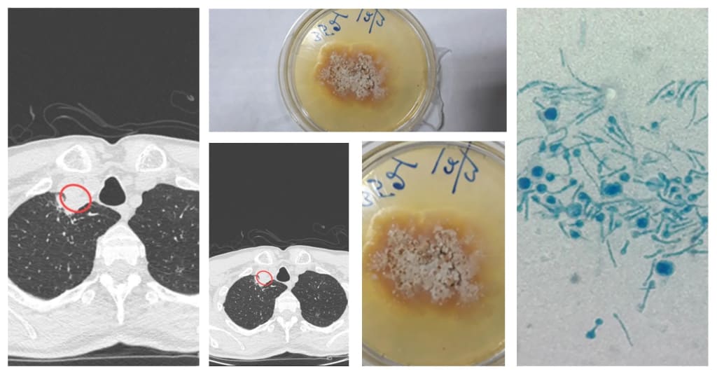 The patient was successfully treated with medication, anti-fungal therapy, and surgical drainage of the pus, which was later tested by the World Health Organization collaborating center in northern India. After a two-month course of anti-fungal medications, the man was diagnosed with Chondrostereum purpureum, a plant fungus responsible for silver leaf disease in plants.