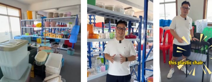 One of our clients wanted to start producing household plastics locally, but the cost of new molds was overwhelming. So today let's explore some used mold options for him. Joe took us to this showroom. Every product on display, such as chairs, basins, and storage boxes, was made with their molds. For example, a plastic chair costs only about $4 in material, yet the mold for it is around $25,000.