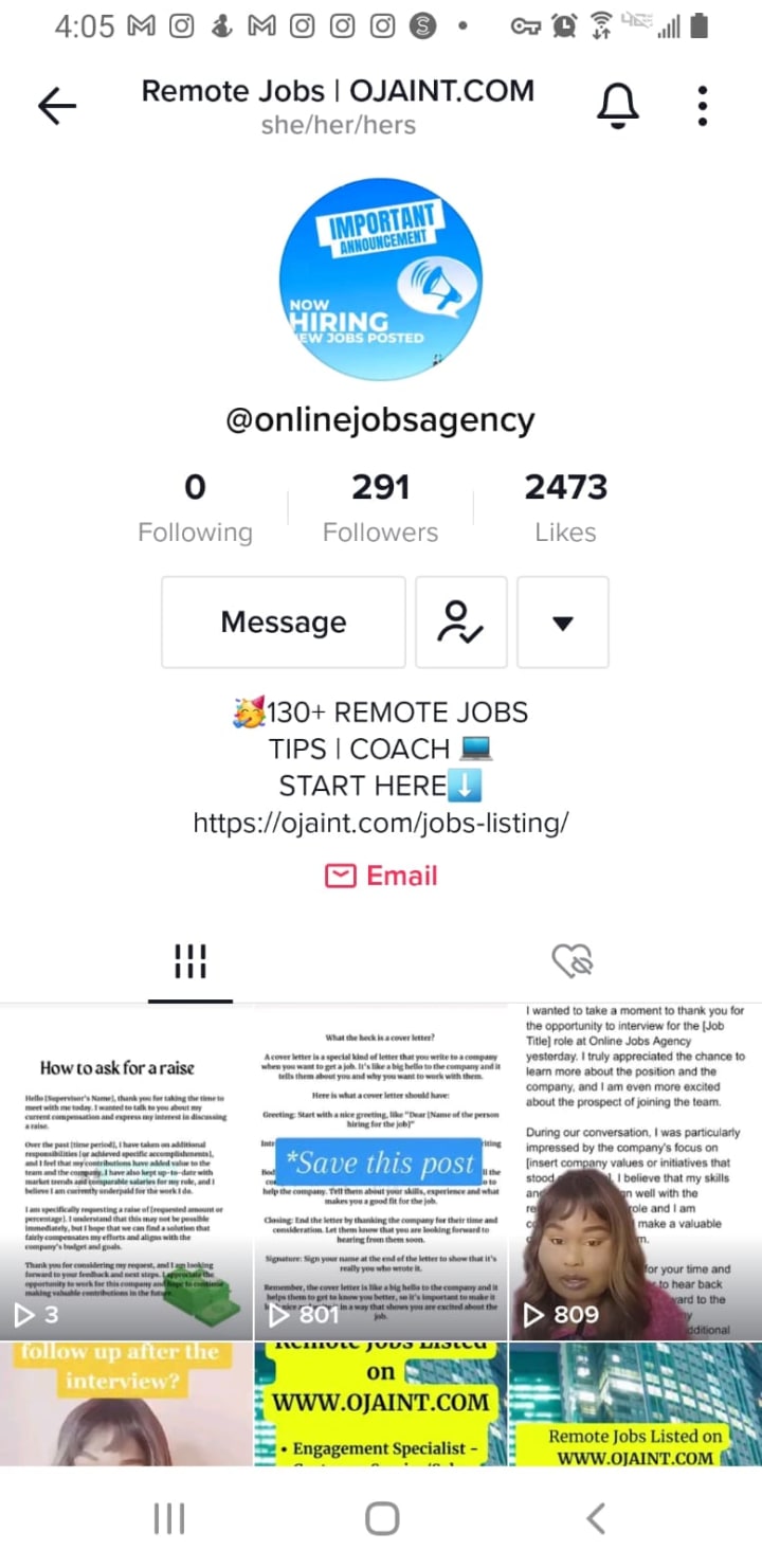 As of today (February 1, 2023 at 4:01 pm, Online Jobs Agency's official tiktok page is at 292 followers, 2473 likes)