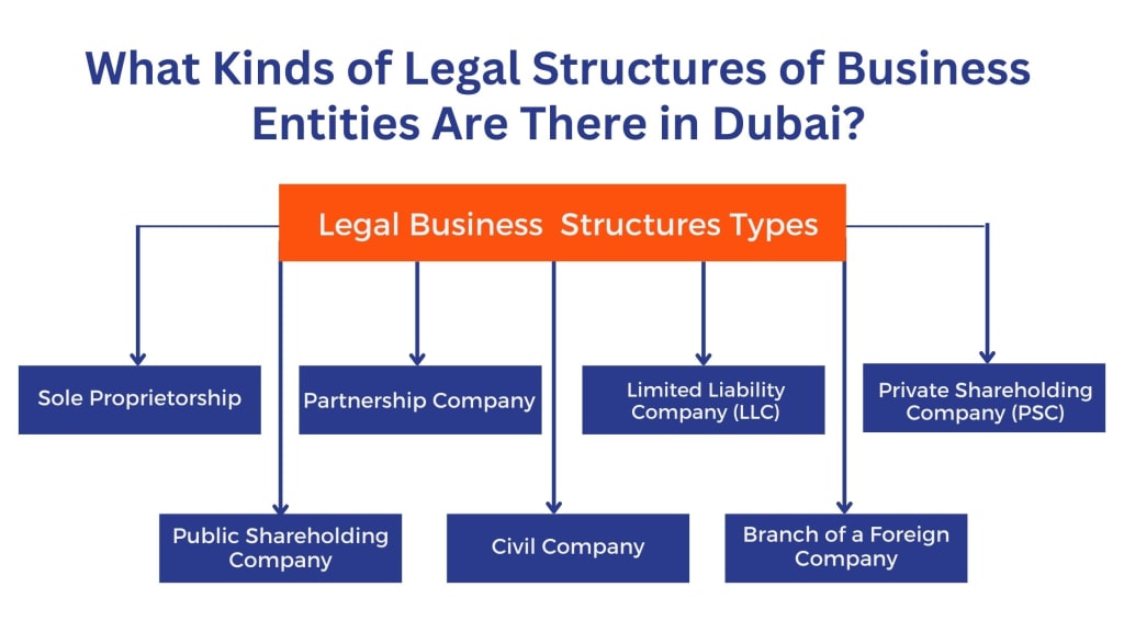 What kinds of legal structures of business entities are there in Dubai?