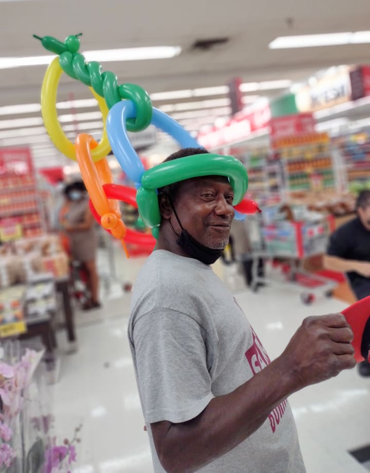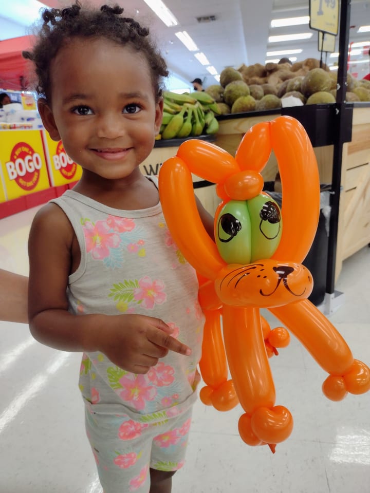 We are at the grocery store. I am twisting balloon animals in the produce section. Sitting in a folding chair between bananas and coconuts, I am swooning in personal bliss.