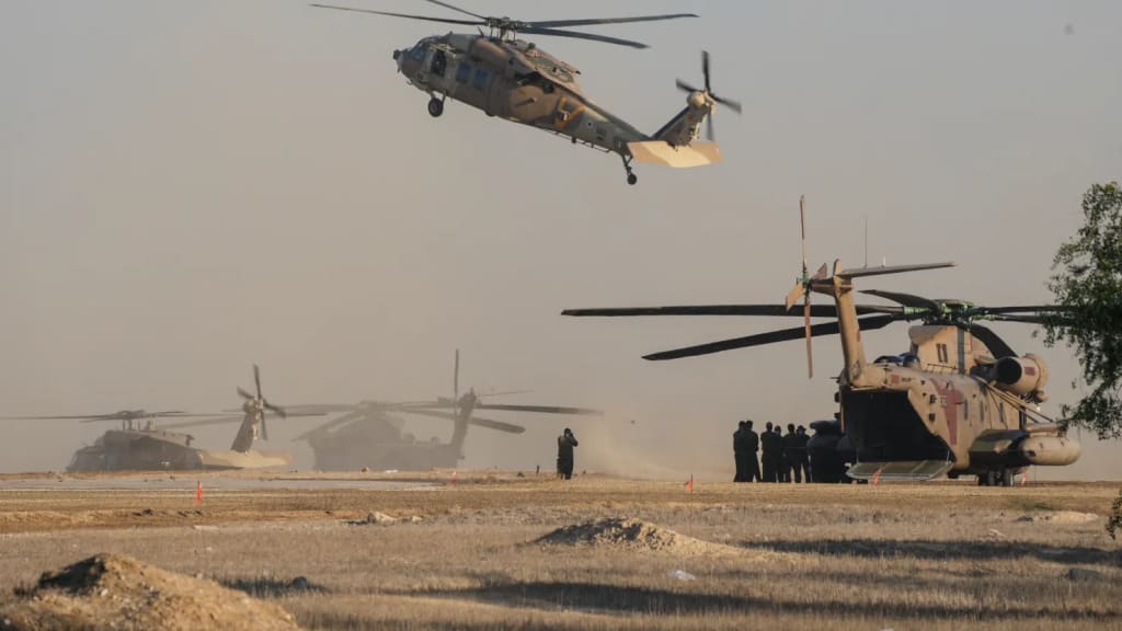 Yet for now, the sound of helicopters carrying freed hostages drowns out the sound of drones.