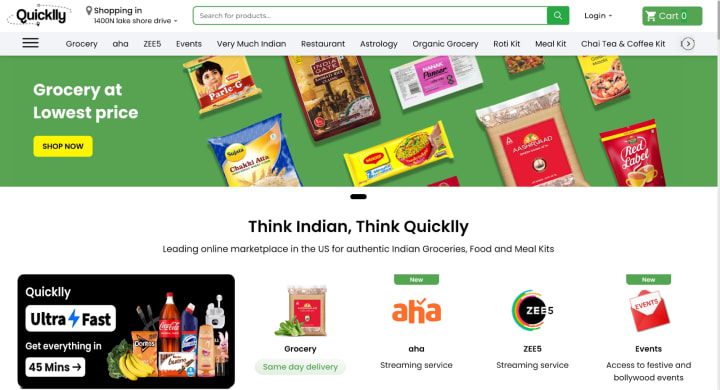 Quicklly is one of the most popular Indian grocery delivery platforms in the U.S. It partners with local Indian grocery stores to offer everything from fresh produce to hot meals. But for groceries, the key attraction is the frequent promotions and bundle offers.