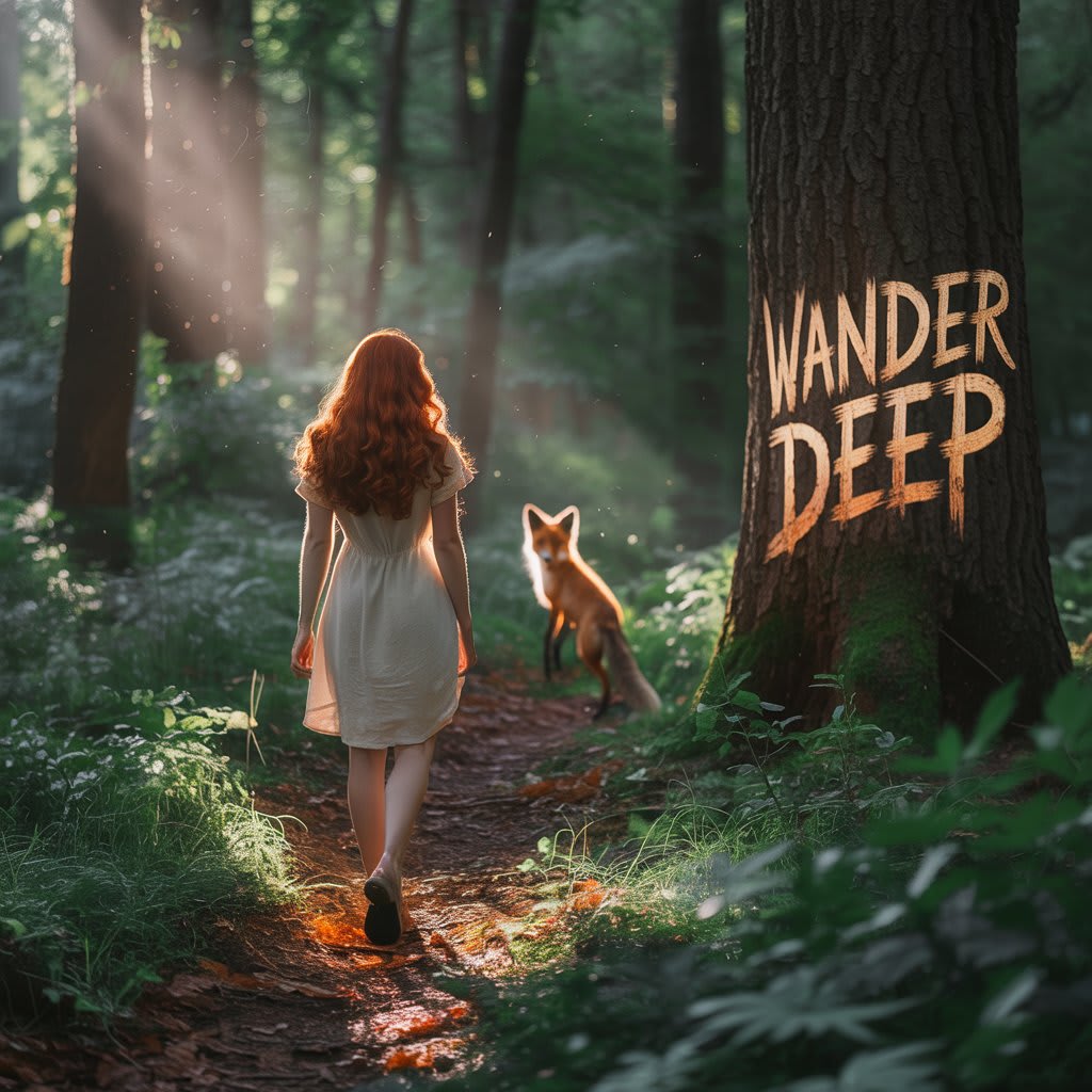 Across the stream stood a red fox, half-hidden by ferns. It stared at her, unmoving. Its fur glowed in the fading light, and for a heartbeat, it felt like looking into something more than animal—something knowing.